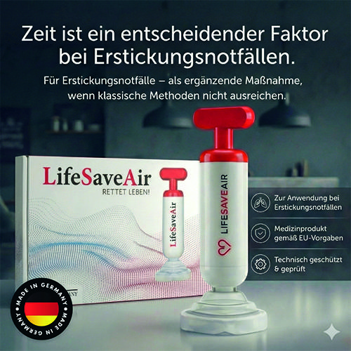 LifeSaveAir® ist ein mechanisches Notfallgerät zur Unterstützung bei Erstickungsunfällen. Das